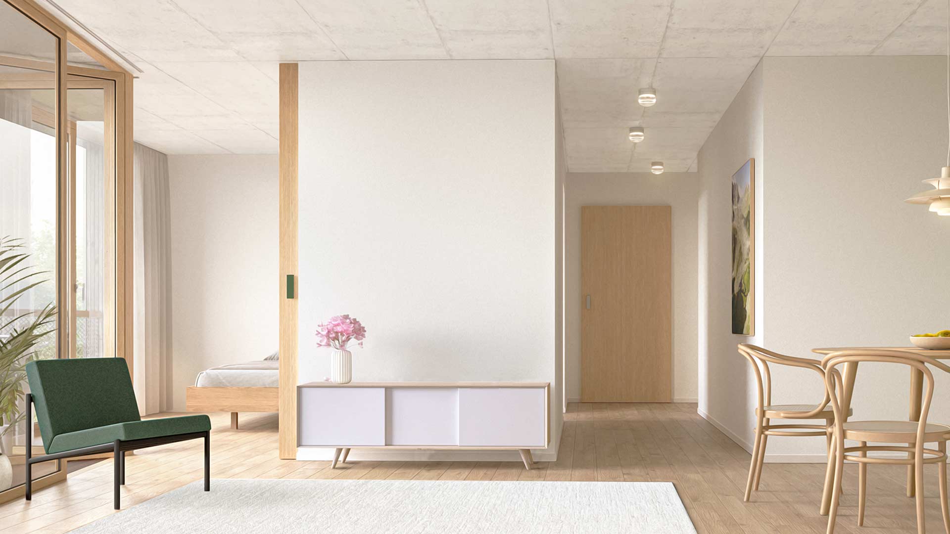 Alle Wohnungen erfüllen die Normen für altersgerechte Wohnbauten. Zur Verfügung stehen